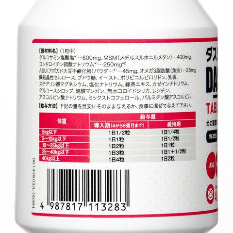 メーカー画像 ダスクイン タブレット 犬用 40粒 4987817113283 犬 イヌ いぬ 犬用 いぬ用 dog DOG 犬フード 健康補助食品 サプリメント 高齢犬 高齢 シニア犬 シニア 老犬 関節 軟骨 健康維持 関節の健康 関節ケア グルコサミン FCHG49グルコサミン塩酸塩 コンドロイチン TRH122コンドロイチン硫酸ナトリウム MSM メチルスルホニルメタン ASU オメガ3脂肪酸 独自開発 錠剤 タブレット エランコ 20250205 y25m02 ngtk