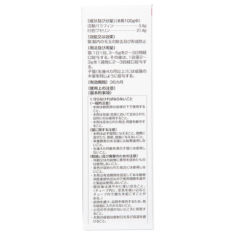 特長 ●ペーストタイプの猫用毛玉除去剤です。