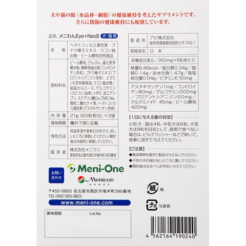 | メニわん Eye+Neo II 犬猫用 180粒(60粒×3袋) | |