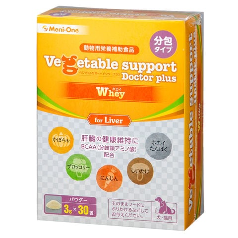メーカー画像 ベジタブルサポート ドクタープラス ホエイ パウダー 犬猫用 3g×30包 4562164190400 犬 イヌ いぬ 犬用 いぬ用 dog DOG 犬フード 健康補助食品 サプリメント 猫 ネコ ねこ 猫用 ねこ用 cat CAT 猫フード 健康維持 肝臓 ホエイ BCAA 分岐鎖アミノ酸 かぼちゃ ブロッコリー にんじん しいたけ 粉末 パウダー 凍結粉砕製法 メニワン メニわん Meni One 国産 日本産 20250205 y25m02 ngtk