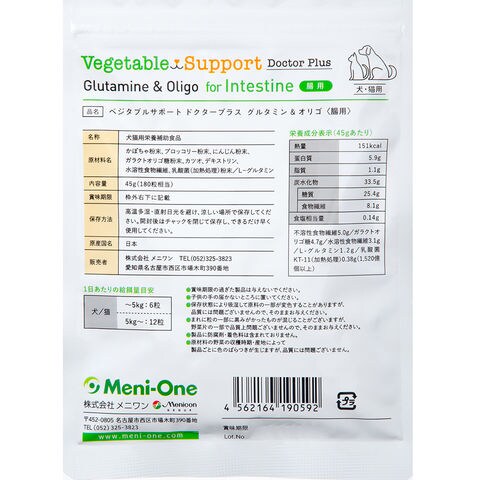 ベジタブルサポート ドクタープラス グルタミン&オリゴ(腸用) タブレット 犬猫用 45g(180粒) 関東当日便