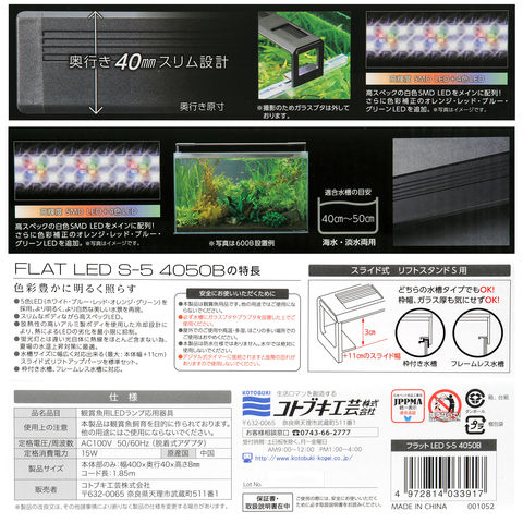 水槽 ライト 照明 LED LEDライト LED照明 アクアリウム アクアリウム用品 アクア用品 アクアリウム アクア 熱帯魚 金魚 メダカ エビ シュリンプ 淡水 淡水魚 淡水水槽 水草 水草水槽 水槽用照明 水槽用ライト コトブキ工芸 フラットLED S-5 4050B 4972814033917 ブラック 黒 淡水 海水 両用 海水魚 kak 20250301 y25m03 bnr2505newkoto opa2_choku