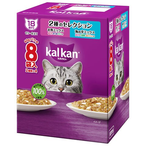 メーカー画像 カルカン パウチ 18歳から 2種のセレクション お魚ミックス まぐろ・かつお・たい入り 海の幸ミックス まぐろ・白身魚・ほたてだし入り 60g 8袋パック キャットフード 4902397873570 20250122 y25m01 mikari 猫 ネコ ねこ 猫フード エサ えさ 餌 総合栄養食 ご飯 ごはん ゴハン 鮪 マグロ まぐろ かつお 鰹 カツオ 鯛 タイ 白身魚 ほたて ホタテ 帆立 老猫 シニア シニア猫 高齢猫 ウェットフード マース レトルト ボール売り 箱売り アソート キャットフード 猫ごはん 猫フード Newkalkan opa2_choku 新カルカン