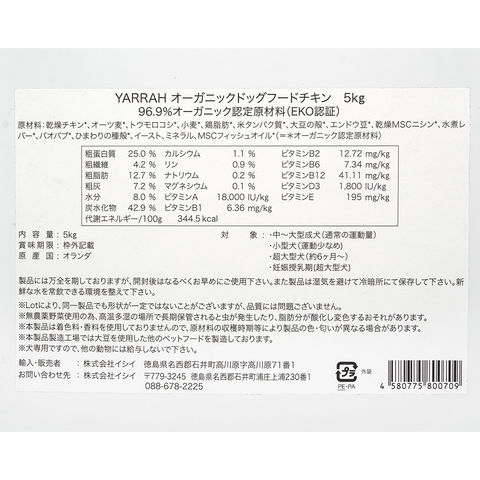 | ドッグフード YARRAH ヤラー オーガニックドッグフード チキン 5kg 正規品 | |