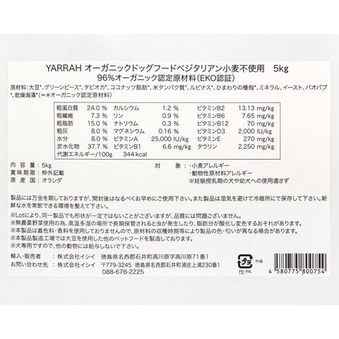 | YARRAH ヤラー オーガニックドッグフード ベジタリアン小麦不使用 5kg 正規品 | |