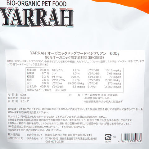 | YARRAH ヤラー オーガニックドッグフード ベジタリアン 600g 正規品 | |