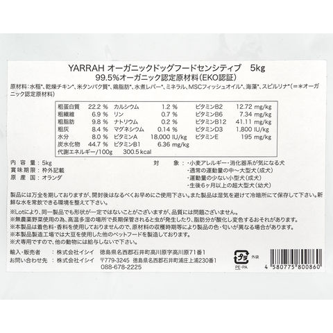 | YARRAH ヤラー オーガニックドッグフード センシティブ 5kg 正規品 | |