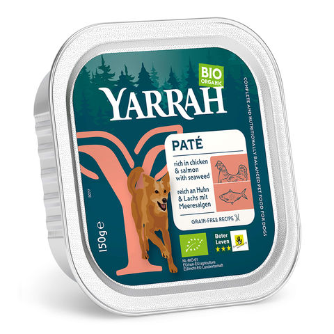 メーカー画像 ドッグフード YARRAH ヤラー チキンとサーモンのドッグパテ 150g 正規品 4580775800983 犬フード 犬 イヌ dog 犬用 犬の餌 犬えさ 犬餌 ペットフード プレミアムフード ウェット ウエット 缶詰 アルミトレー アルミトレイ パテ ペースト オーガニック 鶏肉 チキン サーモン 鮭 さけ 海藻 成犬 高齢犬 高齢 シニア犬 シニア 老犬 離乳食 子犬 パピー 穀物不使用 グレインフリー グルテンフリー 消化器系 消化器 無香料 香料不使用 無着色 着色料不使用 無農薬 農薬不使用 水分補給 お腹 お腹が敏感 お腹にやさしい 20250219 y25m02 ngtk