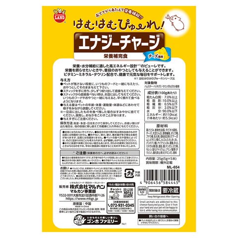 メーカー画像 マルカン はむはむぴゅーれ エナジーチャージ チーズ風味 4906456584445 20250311 y25m03 ktym はむはむ ぴゅーれ エナジー チャージ チーズ 栄養補給 栄養 水分補給 水分 補給 高エネルギー 高エネルギー設計 栄養補完食 補完食 カロリー摂取 ブドウ糖 ナトリウム ビタミン ミネラル タウリン 食物繊維入り 食物繊維 毛玉ケア 毛玉 ケア ハリネズミ モモンガ コミュニケーション 小動物 小動物おやつ おやつ 間食 小動物フード フード animal アニマル ピューレタイプ サポート 着色料不使用 着色料 発色剤不使用 発色剤 y25m03 linean2503food opa2_choku