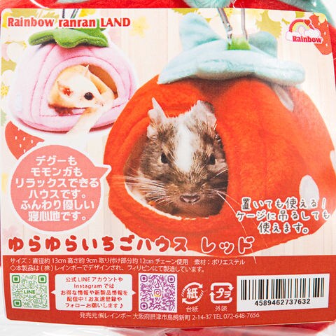 _animal 小動物 小動物用品 レインボー ゆらゆらいちごハウス レッド bnr_rainbowanimal rainbow デグー ももんが モモンガ リス ハウス 布製 布 寝床 ベット ベッド 布団 苺 かわいい 苺柄 いちご柄 kak 4589462737632 20250226 y25m02 y25m02newani