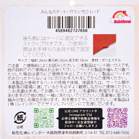 _animal 小動物 小動物用品 レインボー みんなのテントハウス いちご レッド bnr_rainbowanimal rainbow フェレット ハリネズミ モルモット みにうさぎ ミニウサギ うさぎ ウサギ チンチラ ハウス 布製 布 寝床 ベット ベッド 布団 苺 かわいい 苺柄 いちご柄 kak 4589462737656 20250226 y25m02 y25m02newani