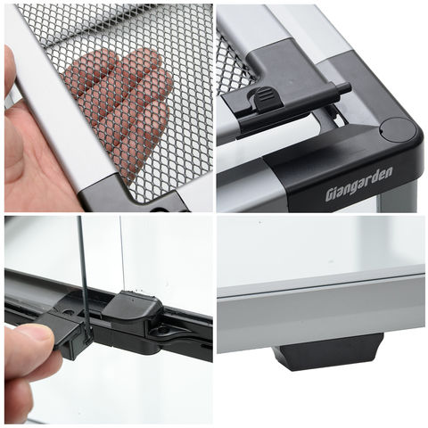 ●正面がフレームレスとなっており、生体やレイアウトの視認性・外観の美しさを追求した組み立て式のスライドタイプの爬虫類ガラスケージです。 ●スイングドア支柱をケージのフレームと一体化させることで、開口部を広く確保しています。 ●強化ガラス、アルミ合金フレーム、丈夫な金属メッシュを採用しており、頑強な造りとなっています。 ●トップカバーは前後どちらにも開くことができ、ロックを全て解除すれば取り外し可能です。 ●電源コード、加湿器のホースやチューブ、噴霧器のノズルなど様々な太さのものを通すことができる多機能ケーブルパスが側面に付いています。 ●ライトステーが標準で付属しています。 ●別売のワイヤーロック、スタッキングバー、キャスターが使用できます。 |