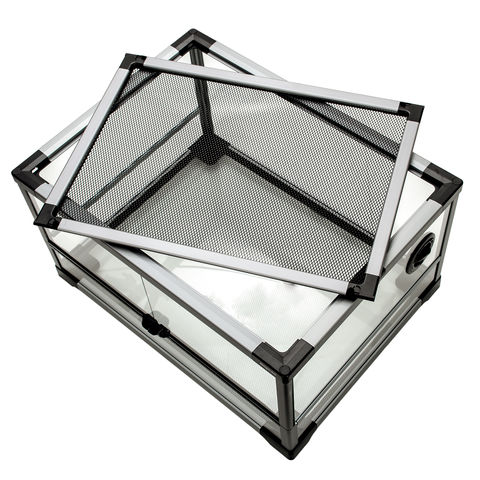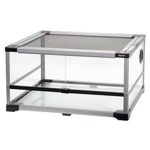 ●正面がフレームレスとなっており、生体やレイアウトの視認性・外観の美しさを追求した組み立て式のスライドタイプの爬虫類ガラスケージです。 ●スイングドア支柱をケージのフレームと一体化させることで、開口部を広く確保しています。 ●強化ガラス、アルミ合金フレーム、丈夫な金属メッシュを採用しており、頑強な造りとなっています。 ●トップカバーは前後どちらにも開くことができ、ロックを全て解除すれば取り外し可能です。 ●電源コード、加湿器のホースやチューブ、噴霧器のノズルなど様々な太さのものを通すことができる多機能ケーブルパスが側面に付いています。 ●ライトステーが標準で付属しています。 ●別売のワイヤーロック、スタッキングバー、キャスターが使用できます。 ●フォーダブル(スライド)6045とフォーダブル(スイング)6032はスタッキングバーで重ねることができます。 |