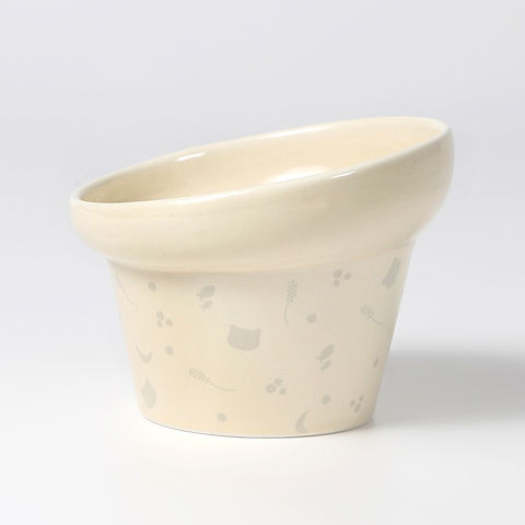 | 特長 | ●細かなプリントを散りばめたキレイめデザインの猫用食器です。 ●手前側が低くなっているので高さがありながら顔が入れやすく、反り返しがあるのでこぼれにくくなっています。 ●猫の顔型の凹み付きデザインで、フードが集まりやすく最後まで残さず食べられます。 ●熱湯や電子レンジにも対応しているので、フードをふやかしたり温めに便利です。また、食洗機にも対応しています。 |