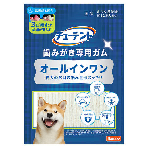 メーカー画像 チューデント 歯みがき専用ガム オールインワン M 70g 4562149054109 ハーツ 犬 イヌ 犬用 いぬ用 dog 犬フード ドッグフード 犬おやつ おやつ トリーツ 間食 犬の餌 犬えさ 犬餌 ペットフード 歯磨き 歯みがき デンタルケア デンタルケアガム ガム 中型犬 大型犬 超大型犬 歯垢除去 口臭 舌の汚れ フッ素 ビタミンE 長持ち お口の悩み 汚れをかきとる 歯 歯ぐき 口腔内 健康維持 歯垢 歯の汚れ こすり落とす 食餌の後 食事の後 食後 夜 おやすみ前 寝る前 国産 日本産 20250408 y25m04 ngtk cpn2505hartz 25raf_d_hrt 25raf_d0
