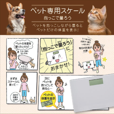 特長 ●抱いたまま計測できるため、簡単にペットの健康管理が可能なペット用体重計です。