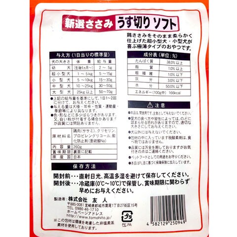 | 友人 新鮮ささみ うす切りソフト 260g | |