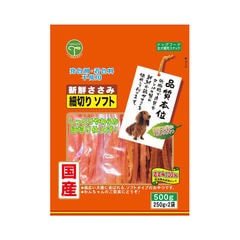 | 特長 | ●幅広い犬種に喜ばれる、ソフトタイプのおやつです。 ●極薄なので超小型犬、小型犬、幼犬やシニア犬にもおすすめです。 ●鶏ささみをそのままやわらかく仕上げました。発色剤、着色料不使用です。 |