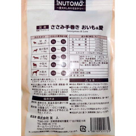 | 友人 iNUTOMO イヌトモ ささみ手巻き おいも&愛 80g | |