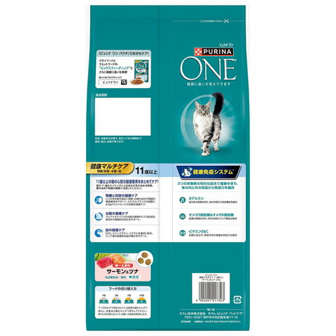 メーカー画像 ピュリナワン ドライ 健康マルチケア 11歳以上 サーモン&ツナ 2kg(500g×4袋) 4902201217323 猫フード キャットフード キャット 猫 ねこ 健康 免疫 無添加 総合栄養食 食べやすい 小さめ 細粒 腎臓 尿路 お腹 脳 11歳 11才 老猫 シニア猫 シニア期 サーモン 鮭 ツナ ドライフード カリカリ 便 餌 えさ ご飯 ごはん cpn2503pw 20250407 TISK y25m04 複数売り まとめ売り まとめ買い ケース売り 箱売り 箱買い cpn2509nestle フード cpn2603purina
