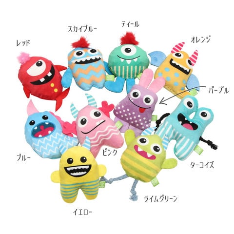 | 特長 | ●手のひらサイズの小さくて可愛いぬいぐるみ系おもちゃです。 ●「カラフルモンスター スカイブルー」は、赤いたてがみをもったシマシマ模様のオバケです。 ●ボディーにはスクウィーカーが入っています。 |