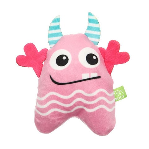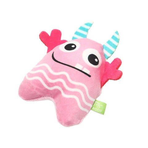 | 特長 | ●手のひらサイズの小さくて可愛いぬいぐるみ系おもちゃです。 ●「カラフルモンスター ピンク」は、シマシマの角とパッと開いた手が可愛いオバケです。 ●ボディーにはカシャカシャ音がするクッションが入っています。 |