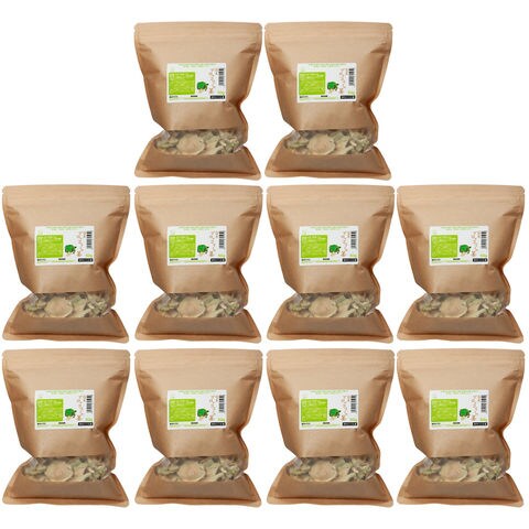 | 特長 | ●ブロッコリーの茎の部分です。 ●ブロッコリーは緑黄色野菜で、葉や茎にはビタミンCやβカロテンが豊富に含まれています。 ●取れたてのおいしい素材を新鮮なうちに低温でじっくり自家乾燥させました。 ●着色料や保存料、添加物は使用しておりません。素材そのままなので安心です。 ●保存に便利なチャック付きパッケージです。 ●窒素ガス充填パックなので新鮮なままお届けします。(窒素ガスを充填しているため袋が膨らんでいます。) ●10袋セットです。 |