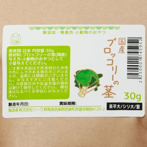 | ご注意 | ※本品は小動物用フード(おやつ)です。 ※ブロッコリーはカルシウムを多く含むため与えすぎにご注意ください。 ※本品は天然素材のため葉の破れや色にムラがある場合がございますが、品質に問題ございません。 ※繊細な葉の為、少々崩れてしまうことがございますが、ペレットにふりかけるなどして余さずご使用ください。 |