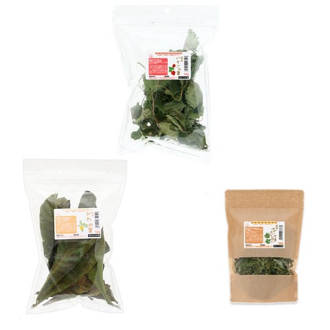 | セット内容 | ●国産 いちごの葉 10g×1袋 ●国産 びわの葉 10g×1袋 ●国産 パパイヤの葉のみじん切り 30g×1袋 |