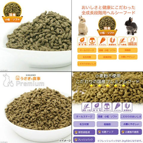 ●国産 全成長段階用 うさぎの食事 1.2kg×1 ●国産 うさぎの食事プレミアム 1.2kg×1 ●国産 うさぎの食事 副菜 100g 乾燥野菜&チモシーペレット×1 |