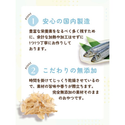 ●日本海近海で獲れた新鮮ないわしのみを使用した、素材そのままのおやつです。 ●天日干しで乾燥させて旨味を凝縮しており、無添加・無着色なので、安心して与えて頂けます。 ●肉類や穀物を一切使用していないため、様々な食物アレルギーのわんちゃんにも安心して与えて頂けます。 |