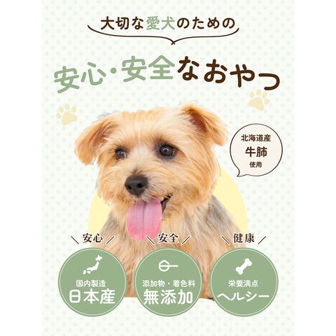 ●100%北海道産の牛の肺を食べやすい角切りサイズのおやつに仕上げました。 ●添加物不使用の素材そのままの純国産おやつです。 ●小麦粉などの穀物も一切使用していませんので、穀物アレルギーのわんちゃんにも安心して与えて頂けます。 |