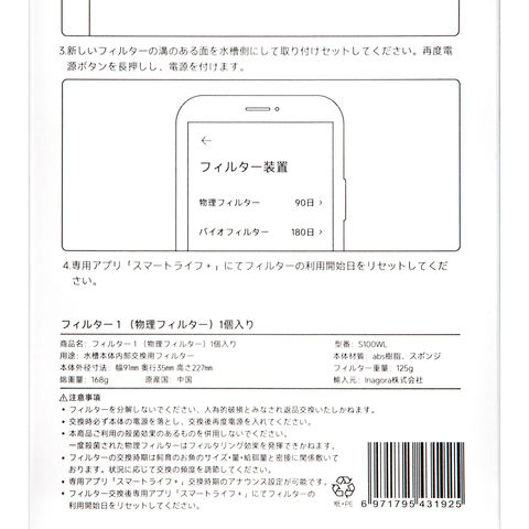 | ご注意 | ※本品はBiorium Smart Aquarium専用の物理フィルターです。その他の製品には適合いたしませんので、あらかじめご了承ください。 |