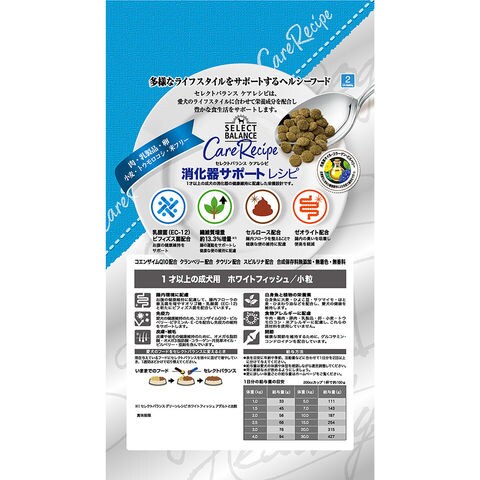 メーカー画像 セレクトバランス ケアレシピ ホワイトフィッシュ 小粒 消化器サポートレシピ 1才以上の成犬用 800g 4541851004381 犬 いぬ ドッグフード 犬フード 犬用フード ドライフード 消化器 お腹 乳酸菌 ビフィズス菌 成犬 国産 食物アレルギーに配慮 白身魚 便臭 便 糞 フン 臭いを吸着 健康な便 小麦不使用 肉不使用 合成保存料無添加 無着色 無香料 20250424 y25m04 ngtk gs ドライ フード