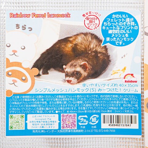 メーカー画像 レインボー シンプルメッシュハンモック S みーつけた! クリーム 4589462737847 20250430 y25m04 ktym シンプル メッシュ ハンモック Sサイズ 使いやすい サイズ クリーム色 アイボリー ベージュ フェレット ペット 小動物 animal アニマル カンタン取り付け 簡単取り付け 簡単 取りつけ 取付 のぞき見 覗く のぞく キュート 可愛い かわいい プリント 通気性 マジックテープ マジック テープ フェレットグッズ グッズ 小動物用品 用品 あったらいいな 実用性 吊るす 吊り下げ
