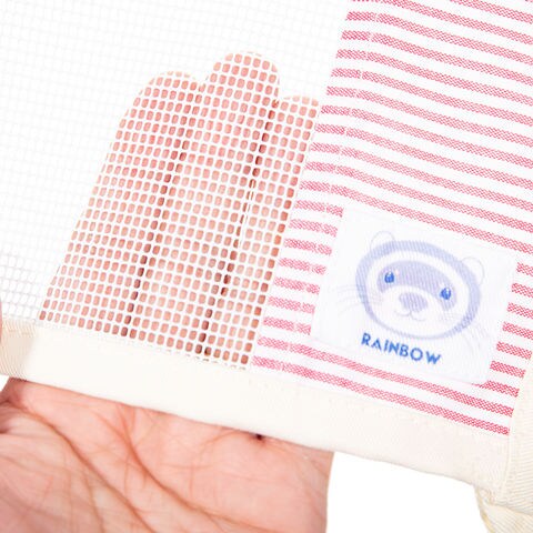 | 特長 | ●フェレット用のハンモックです。 ●ボーダー生地とメッシュ素材を組み合わせた夏用ハンモックです。 ●大きめサイズなので、多頭飼いにもおすすめです。 ●取り付け部分はナスカンです。 |