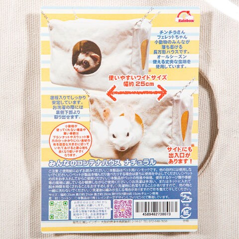 メーカー画像 レインボー みんなのコンテナハウス ナチュラル 4589462738073 20250501 y25m04 ktym みんな コンテナ ハウス チンチラ フェレット ペット 小動物 animal アニマル フェレットグッズ グッズ 小動物用品 用品 落ち着く 長方形 家 オールシーズン 丈夫 生地 ワイドサイズ ワイド 底板入り 底板 洗濯 取り出せる ブランケット スウェット 布 サイド 出入口 出口 入口 ハンモック 吊るす 吊り下げ シンプル ベージュ オフホワイト 吊るす 吊り下げ