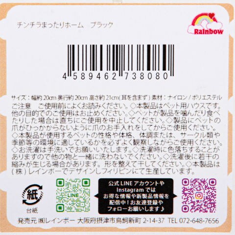 メーカー画像 レインボー チンチラ まったりホーム ブラック 4589462738080 20250506 y25m04 ktym まったり ホーム ハウス 家 黒色 黒 ケージ固定 ケージ固定式 固定式 ストラップ ナイロン生地 お家 お手入れ簡単 型崩れしにくい 耳付き ペット 小動物 animal アニマル グッズ 小動物用品 用品 あったらいいな 実用性 ペット ペット用品