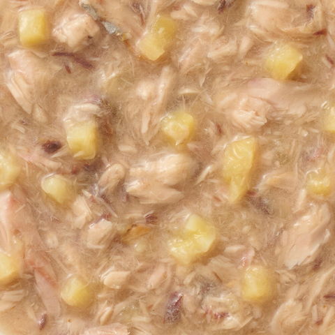 | 特長 | ●まぐろをフレーク状にほぐし、さつまいもを加え、食べやすいとろみタイプに仕上げた犬用の栄養補完食です。 ●着色料、発色剤無添加で安心の国産フードです。 |