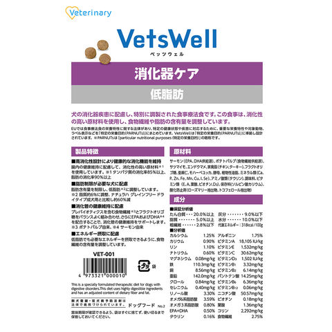 メーカー画像 ベッツウェル 犬用食事療法食 消化器ケア 低脂肪 1kg 4973321000010 20250514 y25m05 Kbsk 犬 いぬ ドッグ ドッグフード 犬用 犬フード フード エサ 餌 ごはん ご飯 サンライズ マルカン ドライフード ドライ 病院 成犬 健康 健康維持 消化機能 消化器疾患 腸内環境 食物繊維 脂肪制限 消化管 サーモン 鮭 シャケ VET-001