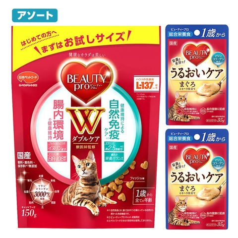 ビューティープロ キャット Wケア&パウチお試しセット Wケア腸内・自然免疫ケア150g&パウチまぐろ×2 お一人様1点限り 関東当日便