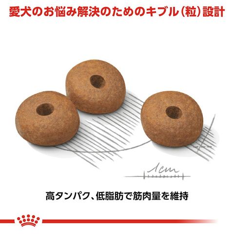 | 特長 | ●【目に見える実感】低脂肪設計の<ミニ ライト ウェイト ケア>を与えられた88%以上の犬が、8週間以内の減量に成功※。 ※標準的なロイヤルカナン製品と比較して、31%脂肪オフの低脂肪設計(ロイヤルカナン調べ) ●高タンパク、低脂肪によって筋肉量を維持し、体重の増加を抑える設計。 ●可溶性と不溶性の2つの食物繊維の最適なバランスで低カロリーでも満腹感を維持し、オメガ3系脂肪酸が健康な関節を維持。 ●脂肪を燃料させてエネルギーの変換に必要なL-カルニチンを配合。 |