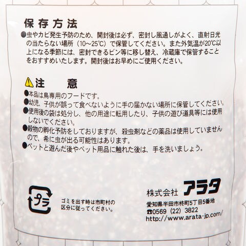 | ご注意 | ※本商品は鳥用です。目的用途以外には使用しないでください。 |
