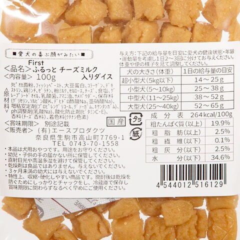 frditem_hidden 犬 おやつ ふるっと チーズミルク入りダイス 100g エースプロダクツ 4544012516129 20250515 y25m05 Kbsk ドッグフード 犬フード イヌ ドッグ DOG 愛犬 ご褒美 間食 チーズ ミルク 国産 日本 食べやすい ミニサイズ トレーニング しつけ トリーツ 犬用おやつ イヌ用おやつ 小粒 たんぱく質 カルシウム コラーゲン