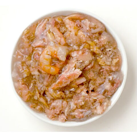 | 原材料 | イワシ、スープ、タピオカスターチ、サンフラワーオイル、エビ、カニ肉、グァーガム、第三リン酸カルシウム、アボカドオイル、タウリン、塩、ミネラル(酸化亜鉛、還元鉄、亜セレン酸ナトリウム、硫酸マンガン、アミノ酸銅キレート、ヨウ化カリウム)、ビタミン(ビタミンE、ナイアシン、ビタミンB1、ビタミンA、ビタミンB12、ビタミンB6、パントテン酸カルシウム、ビタミンB2、ビオチン、ビタミンD3、葉酸、ビタミンK)、塩化カリウム、塩化コリン |