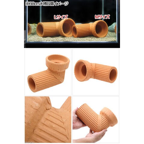 隠れ家土管 L字管 M 内径75mm 大型 シェルター 水槽用オブジェ アクアリウム用品 関東当日便