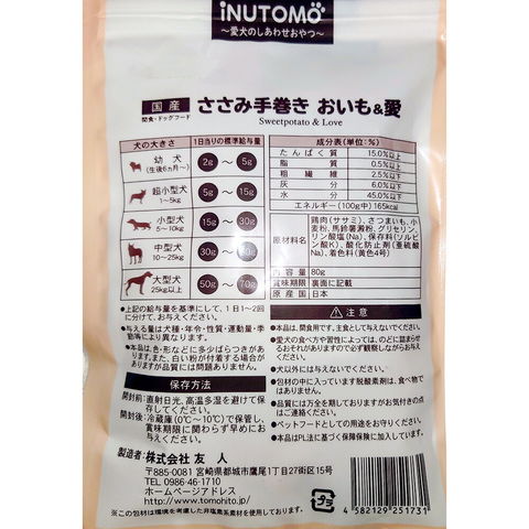 | 友人 iNUTOMO イヌトモ ささみ手巻き おいも&愛 80g×3 | |