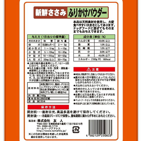 友人 新鮮ささみ ふりかけ パウダー 160g 犬 ドッグフード 国産 4582129250833 mura 犬用 いぬ ドッグ 犬フード フード ドライ えさ 餌 ごはん オヤツ 間食 削り節 幼犬 成犬 シニア犬 高齢犬 老犬 低脂肪 たんぱく質 鶏ささみ ふわふわ トッピング ともひと 20250601 y25m06 kak
