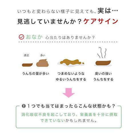| 特長 | ●超高消化性タンパク(L.I.P)が健康的な消化吸収をサポートする、おなかの健康を維持したい子のためのケアフードです。 ●フラクトオリゴ糖などのプレバイオティックスや食物繊維が腸内バランスを整え、健康的な便の状態を維持します。 ●好き嫌いが多い小型犬も喜んで食べるように、独自の栄養成分と厳選されたフレーバーを配合しました。 ●よく噛むことにより歯石の形成が抑えらる粒設計です。また、歯の健康を維持するためにポリリン酸ナトリウムを配合しました。 |