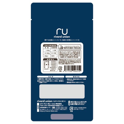 | 原材料 | 魚介類(まぐろ、かつお、サーモン、しらす)、米粉、天然水(鳥取県産奥大山の水使用)、ほたてエキス調味料、マルトオリゴ糖、かつおだし、こんぶだし、寒天、ビタミンE |